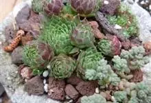 多年生肉质草本;花朵 聚伞花序;叶片倒卵形至窄长圆形,肉质肥厚,叶厚且有丝状毛或毫毛,丛生呈莲座状,蓝绿色,叶端紫红色,长4cm;夏天开星状小花,有红、白、黄等色,…全部>>