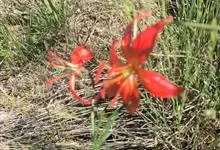 山丹是百合科百合属的多年生草本植物。鳞茎卵形或圆锥形,鳞片长圆形或长卵形,白色;叶散生茎中部,线形,边缘有乳头状突起;花单生或数朵成总状花序,花鲜红色,常无斑点,花被片反卷,…全部>>