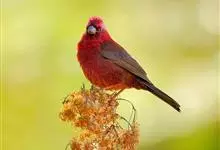 酒红朱雀小型鸟类,体长13~15厘米。雄鸟通体深红色,头部深朱红或棕红色,下背和腰玫瑰红色,眉纹粉红色而具丝绢光泽。两翅和尾黑褐或灰褐色、具暗红色狭缘,内侧两枚三级飞羽具淡粉红色先端。…全部>>