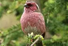 喜马拉雅白眉朱雀:小型鸟类,体长15-17厘米,体重24-35克。额基、眼先深红色,前额和一条长而宽阔的眉纹珠白色沾有粉红色并具丝娟光泽,在暗色的头部极为醒目。头顶至背棕褐或红褐色、具黑褐色羽干纹,…全部>>