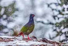 白颈长尾雉:大型鸡类,体长81厘米,体型大小和雉鸡相似。雄鸟头灰褐色,颈白色,脸鲜红色,其上后缘有一显著白纹,上背、胸和两翅栗色,上背和翅上均具1条宽阔的白色带,极为醒目;下背和腰黑色而具白斑;腹白…全部>>