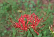 石蒜[学名:Lycoris radiata Herb.],是石蒜科石蒜属的多年生草本植物,别名彼岸花、红花石蒜、死人花、蟑螂花、龙爪花等。石蒜的叶狭带状,中间有粉绿色带,秋季出叶。伞形花序,花鲜红色。…全部>>