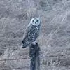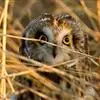 短耳鸮又名小耳木兔、田猫王、夜猫子等,是鸮形目鸱鸮科耳鸮属中小型猛禽动物。成鸟面盘显著,眼周黑色;眼先及内侧眉纹灰白色,面盘余部棕黄色杂以黑色细羽干纹;耳簇羽短小而几乎不外露,…全部>>