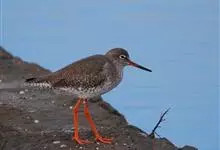 红脚鹬:体长28厘米,上体褐灰,下体白色,胸具褐色纵纹。飞行时腰部白色明显,次级飞羽具明显白色外缘。尾上具黑白色细斑。虹膜黑褐色,嘴长直而尖,基部橙红色,尖端黑褐色。脚较细长,亮橙红色,…全部>>
