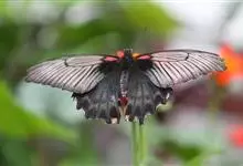 美凤蝶又名多型蓝凤蝶、大凤蝶,是鳞目凤蝶科凤蝶属动物。美凤蝶雄蝶无尾突,翅黑色,正面各翅室中部有深色条纹,分布蓝色鳞片,反面前后翅基部有红斑,后翅臀角有环状红斑。雌蝶具多型,前翅浅灰色,外缘和翅脉黑色,…全部>>