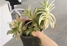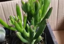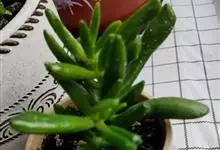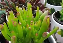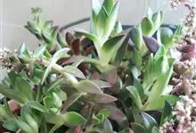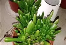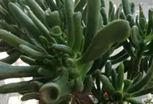 筒叶花月,是景天科青锁龙属的多年生草本植物。植株多分株,灌木状,茎较粗壮,圆柱形,表皮灰褐色;叶片肉质,互生,呈圆筒状,簇生于茎或分枝顶端,叶端呈斜截形,截面为椭圆形;花呈星状,淡白色;花期秋季。…全部>>