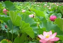 荷花:属山龙眼目、莲科,是莲属中2个物种“莲花”和“黄莲花”及众多人工培育品种的通称。是多年生水生草本花卉。地下茎长而肥厚,有长节,叶盾圆形。花期6至9月,单生于花梗顶端,花瓣多数,嵌生在花托穴内,…全部>>