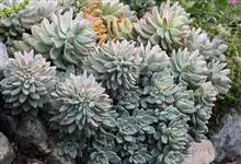 子持莲华 Hara)是景天科瓦松属多年生肉质草本植物。茎葡富,可萌生侧芽、易群生,叶片呈半圆形或长卵形,排列如莲座状、蓝绿色,表面略有白粉,…全部>>