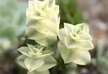 燕子掌 Druce),景天科青锁龙属直立灌木,茎粗壮,多分枝,灰绿色,有老树皮剥落留下的水平棕色条纹;叶具短柄,绿色,无毛,通常具红色边缘,倒卵形;花冠呈星状,…全部>>