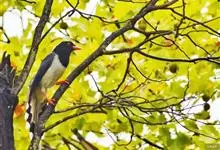 红嘴蓝鹊,别名山鹊、长尾鹊,是鸦科蓝鹊属的一种观赏性较强的大型鸣禽。该物种为体长54~65cm,头、颈、喉和胸黑色,头顶至后颈有一块白色至淡蓝白色或紫灰色块斑,其余上体紫蓝灰色或淡蓝灰褐色。尾长呈凸状,…全部>>