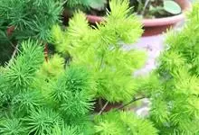 蓬莱松是天门冬科、天门冬属多年生丛生草本植物。宿存,圆柱形肉质根,纵截面为绿色和表面灰色。植株高可达3米。茎呈圆柱形或近四边形,底部木质化,具有灰色或灰褐色。幼嫩的茎在每个节上都被紫绿色鳞片包,…全部>>