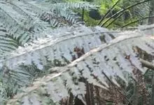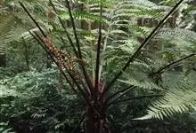 桫椤 R. M. Tryon),桫椤科桫椤属蕨类植物。茎干较高,上部有残存的叶柄;叶片大,呈长矩圆形;羽片互生,长矩圆形;叶脉在裂片上羽状分裂,基部下侧小脉出自中脉的基部;叶纸质,干后绿色。…全部>>