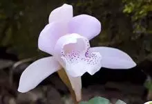 独花兰是兰科独花兰属地生草本植物。假鳞茎近椭圆或宽卵球形,淡黄白色,被膜质鞘;叶宽卵状椭圆形至宽椭圆形,先端急尖或短渐尖,基部圆形或近截形,背面紫红色;花白色,带肉红或淡紫色晕,唇瓣有紫红色斑点,…全部>>