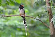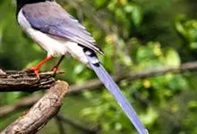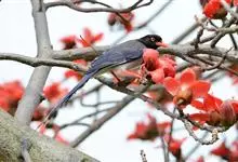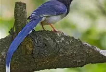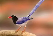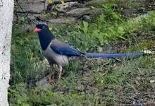红嘴蓝鹊,别名山鹊、长尾鹊,是鸦科蓝鹊属的一种观赏性较强的大型鸣禽。该物种为体长54~65cm,头、颈、喉和胸黑色,头顶至后颈有一块白色至淡蓝白色或紫灰色块斑,其余上体紫蓝灰色或淡蓝灰褐色。尾长呈凸状,…全部>>