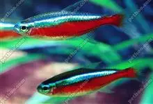 霓虹灯鱼又被称为红绿灯鱼、红莲灯鱼。鱼纲,脂鲤科。原产亚马孙河上游。体长3~4厘米,体形较细,色泽美丽,体上部的绿线,因光线角度不同,有时显出蓝色,与体下部的红线极为协调,又与腹部全红的新红绿灯鱼〔…全部>>