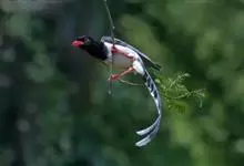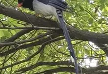 红嘴蓝鹊,别名山鹊、长尾鹊,是鸦科蓝鹊属的一种观赏性较强的大型鸣禽。该物种为体长54~65cm,头、颈、喉和胸黑色,头顶至后颈有一块白色至淡蓝白色或紫灰色块斑,其余上体紫蓝灰色或淡蓝灰褐色。尾长呈凸状,…全部>>