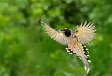灰喜鹊:属雀形目、鸦科的中型鸟类。外形酷似喜鹊,但稍小。体长33-40厘米。嘴、脚黑色,额至后颈黑色,背灰色,两翅和尾灰蓝色,初级飞羽外翈端部白色。尾长、呈凸状具白色端斑,下体灰白色。外侧尾羽较短不…全部>>