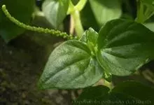草胡椒 Kunth)是胡椒科、草胡椒属的一年生肉质草本植物,高可达40厘米;茎分枝,无毛,下部节上常生不定根。叶片半透明,互生,阔卵形或卵状三角形,顶端短尖或钝,基部心形,…全部>>