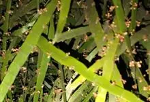 竹节蓼 Meisn.)是蓼科千叶兰属常绿灌木。株高可达1-3米;老枝圆柱形,暗褐色,幼茎扁平,亮绿色,形似叶片,有节及纵沟;叶退化,幼年有少量披针形叶片,端渐尖,基部楔形,全缘或近基部有锯齿,…全部>>