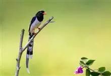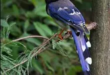 红嘴蓝鹊,别名山鹊、长尾鹊,是鸦科蓝鹊属的一种观赏性较强的大型鸣禽。该物种为体长54~65cm,头、颈、喉和胸黑色,头顶至后颈有一块白色至淡蓝白色或紫灰色块斑,其余上体紫蓝灰色或淡蓝灰褐色。尾长呈凸状,…全部>>