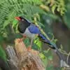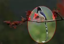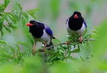 红嘴蓝鹊,别名山鹊、长尾鹊,是鸦科蓝鹊属的一种观赏性较强的大型鸣禽。该物种为体长54~65cm,头、颈、喉和胸黑色,头顶至后颈有一块白色至淡蓝白色或紫灰色块斑,其余上体紫蓝灰色或淡蓝灰褐色。尾长呈凸状,…全部>>