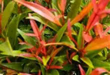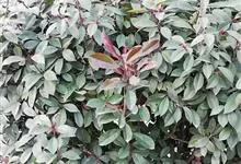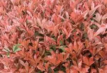 红叶石楠 是蔷薇科,石楠属杂交种,为常绿小乔木或灌木,乔木高可达5米、灌木高可达2米。叶片革质,长圆形至倒卵状、披针形,叶端渐尖,叶基楔形,叶缘有带腺的锯齿,花多而密,复伞房花序,花白色,梨果黄红色,…全部>>