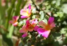 大花马齿苋:一年生草本,高10-30厘米。茎平卧或斜升,紫红色,多分枝,节上丛生毛。叶密集枝端,较下的叶不规则互生,叶片细圆柱形,无毛。花单生或数朵簇生枝端,直径2.5-4厘米,…全部>>