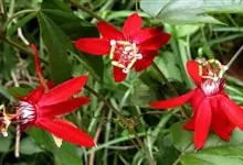 红花西番莲 是西番莲科、西番莲属多年生草质藤本,茎圆形,具卷须,长6-8米。叶互生,长圆形至长卵形,先端渐尖,基部心形,叶缘有不规则浅疏齿。花单生于叶腋,花柄长约4-5厘米,花冠红色,花瓣长披针形,…全部>>