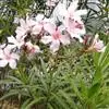 白花夹竹桃是夹竹桃科、夹竹桃属植物夹竹桃的栽培品种。常绿直立大灌木,枝条灰绿色;嫩枝条具稜,被微毛,老时毛脱落。叶3-4枚轮生,下枝为对生,叶面深绿,叶背浅绿色;侧脉纤细平行与中脉成直角;叶柄扁平,…全部>>