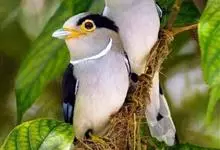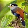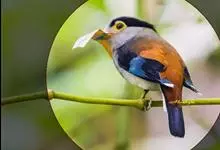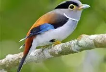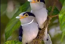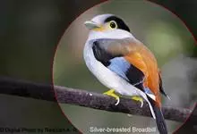 银胸丝冠鸟是雀形目阔嘴鸟科的鸟类,在全世界共分化为10个亚种。体长16-18厘米。嘴宽阔、天蓝色,基部橙色。鼻孔圆形具宽阔的黑色眉纹。上背烟灰色,下背至尾上覆羽栗色,两翅的翼缘白色,翼角羽缘缀浅灰蓝色,…全部>>