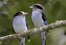 长尾阔嘴鸟是雀形目阔嘴鸟科的鸟类,体长约25厘米,是绿色阔嘴鸟。形长的楔形尾蓝色,喉及脸黄色,顶冠及颈背黑色。两翼黑并具显著的蓝色斑块。头顶具蓝色小点斑,眼后有一黄色点斑。亚成鸟多为绿色。结群活动于…全部>>