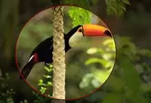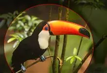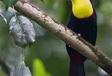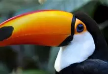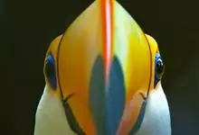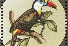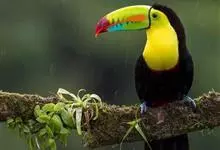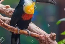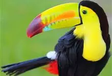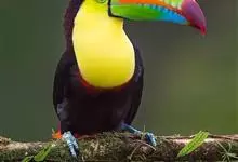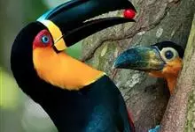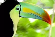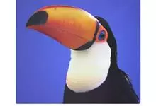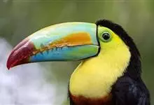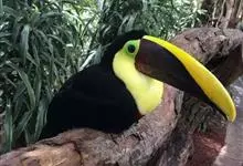 鵎鵼:又名巨嘴鸟。体长约67厘米,嘴巨大,长17~24厘米,宽5~9厘米,形似嘴刀。嘴非常漂亮,上半部黄色,略呈淡绿色,下半部呈蔚蓝色,喙尖点缀着一点殷红。眼睛四周镶嵌着天蓝色羽毛眼圈,胸脯橙黄色,…全部>>