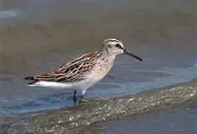 斑胸滨鹬小中型涉禽;体长23厘米,翼展37-45厘米,体重126克。嘴形直,有时微向上或向下弯曲;鼻沟长度远超过上嘴的1/2;羽色暗淡,雌雄羽色及大小大都相同;跗蹠后侧具盾状鳞,…全部>>