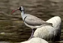 鹮嘴鹬体长40厘米,是一种灰、黑及白色鹬。识别特征为腿及嘴红色,嘴长且下弯。一道黑白色的横带将灰色的上胸与其白色的下部隔开。翼下白色,翼上中心具大片白色斑。幼鸟上体具皮黄色鳞状纹,黑色斑纹不甚清楚,…全部>>