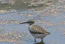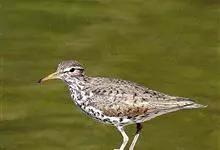 泽鹬:小型涉禽,体长19-26厘米。嘴长,相当纤细,直而尖。颜色为黑色,基部绿灰色,脚细长,暗灰绿色或黄绿色。夏季上体灰褐色具黑色斑,腰白色并向下呈楔形延伸。下体白色,颈、胸具细的黑色纵纹。…全部>>