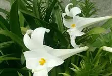 麝香百合:在中国台湾亦称铁炮百合。鳞茎球形或近球形,高2.5-5厘米;鳞片白色。茎高45-90厘米,绿色,基部为淡红色。叶散生,披针形或矩圆状披针形,两面无毛。花单生或2-3朵;花喇叭形,白色,筒外…全部>>
