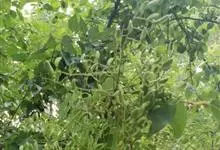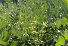 槐 Schott),豆科槐属的落叶乔木。树皮暗灰色,树冠球形,老时则呈扁球形或倒卵形。枝叶密生,羽状复叶。圆锥花序顶生,花蝶形,夏季开黄白色花,略具芳香。荚果肉质,念珠状不开裂,黄绿色,常悬垂树梢,…全部>>