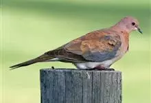 棕斑鸠,是鸽形目鸠鸽科斑鸠属鸟类。整个头和颈淡粉红色,头顶和前额较暗,颊、喉较淡,前颈基部两侧羽毛黑色具宽阔的棕色端斑,使前颈两侧形成黑色斑点状的黑斑。…全部>>