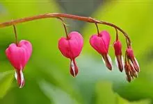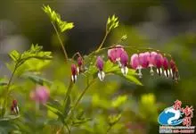 荷包牡丹 Fukuhara),是罂粟科荷包牡丹属的多年生草本植物,株高30-60厘米,具肉质根状茎;茎直立呈圆柱形;叶二回三出全裂,状似牡丹叶;总状花序顶生,基部为心形,花瓣紫红色至粉红色,稀白色,…全部>>