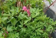荷包牡丹 Fukuhara),是罂粟科荷包牡丹属的多年生草本植物,株高30-60厘米,具肉质根状茎;茎直立呈圆柱形;叶二回三出全裂,状似牡丹叶;总状花序顶生,基部为心形,花瓣紫红色至粉红色,稀白色,…全部>>