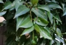 天竺桂,是樟科樟属乔木植物,枝条细弱呈圆柱形,无毛;叶近对生或在枝条上部互生,呈卵圆状长圆形或披针形,上面绿色,下面灰绿色;花序梗与序轴均无毛,花被片呈卵形;果长圆形,…全部>>