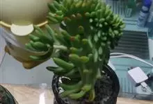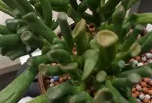 筒叶花月,是景天科青锁龙属的多年生草本植物。植株多分株,灌木状,茎较粗壮,圆柱形,表皮灰褐色;叶片肉质,互生,呈圆筒状,簇生于茎或分枝顶端,叶端呈斜截形,截面为椭圆形;花呈星状,淡白色;花期秋季。…全部>>