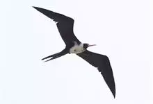 军舰鸟是鹈形目军舰鸟科军舰鸟属鸟类的通称,又称军人鸟。身体较小,腿又短又细,长有钩状嘴;翅膀细长,有很长的叉形尾巴。雄鸟体羽全黑,雌鸟大多数背部、头部和腹部为略带黑色的褐色,而胸部和腋距为白色。…全部>>