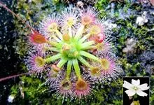 迷你茅膏菜学名圆叶茅膏菜,又名毛毛苔、迷你毛毡苔和迷你茅膏菜,茅膏菜科植物。多年生草本,茎短,叶基生,叶片圆形或扁圆形,螺状聚伞花序1-2条,腋生,花葶状,纤细,直立,蒴果,熟后开裂为3果爿,种子多…全部>>