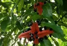假苹婆是锦葵科苹婆属乔木植物。幼枝被毛;叶椭圆形或披针形,先端骤尖,基部钝或近圆无毛;圆锥花序腋生,花淡红色;蓇葖果鲜红色,长卵圆形或长椭圆形;种子卵圆形黑褐色;花期4-6月。…全部>>