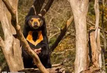 马来熊,是食肉目熊科马来熊属哺乳动物。体胖颈短,眼睛和耳朵小;头部短圆;全身乌黑光滑;鼻唇周为棕黄色,裸露无毛;眼圈为灰褐色,趾基部连有短蹼;胸斑中央有一个毛旋,颈部周围的一圈皮肤极松弛,…全部>>