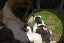 圣伯纳犬,别名巴里汉德,属于大型工作犬,肩高约65~90厘米,体重约50~90千克。圣伯纳犬身体强壮,被毛红褐色和白色相间,头圆而宽大。颈部强壮,胸宽深,背直。前肢长直,腕关节略前倾,后肢腿骨粗壮,…全部>>