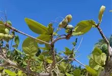 榄仁是使君子科、榄仁属的大乔木。榄仁枝近顶部密被棕黄色绒毛;叶互生,常密集枝顶,倒卵形,叶柄粗,被毛;穗状花序纤细,雄花生于上部,两性花生于下部,花色为绿或白色,无花瓣;果椭圆形,常稍扁,果皮木质,…全部>>