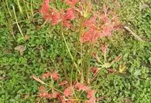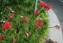 石蒜[学名:Lycoris radiata Herb.],是石蒜科石蒜属的多年生草本植物,别名彼岸花、红花石蒜、死人花、蟑螂花、龙爪花等。石蒜的叶狭带状,中间有粉绿色带,秋季出叶。伞形花序,花鲜红色。…全部>>