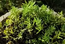 佛甲草,又名狗豆芽、珠芽佛甲草、指甲草,是景天科景天属的多年生草本植物。佛甲草全株无毛,3叶轮生,稀4叶轮生或对生,叶线形。花序聚伞状,中央有一朵有短梗的花。蓇葖果略叉开,种子小。花期4-5月,…全部>>